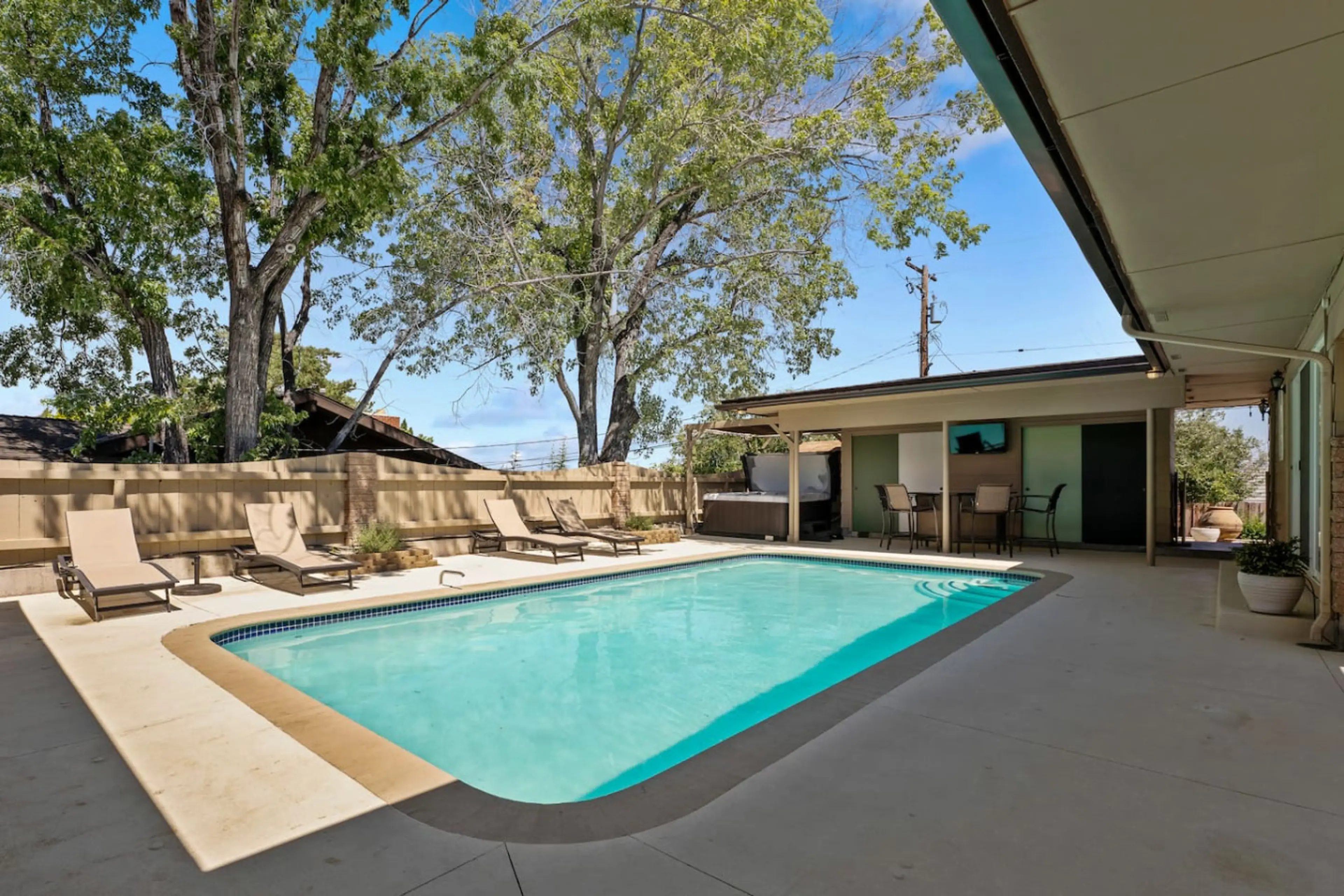 Step through our gated courtyard and into your own Reno oasis. Spend sun-soaked days lounging by the private pool, then unwind in the glowing hot tub or gather around the fire pit as mountain views wrap the whole scene. Inside, enjoy the pool table, stream or cook in our renovated chef’s kitchen, an...
